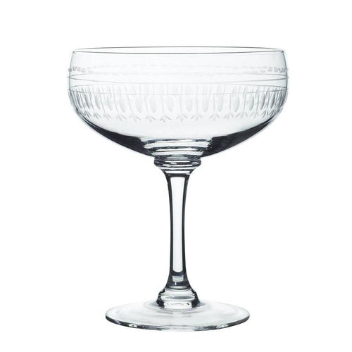 Pair of Ovals Etched Crystal Cocktail Glasses