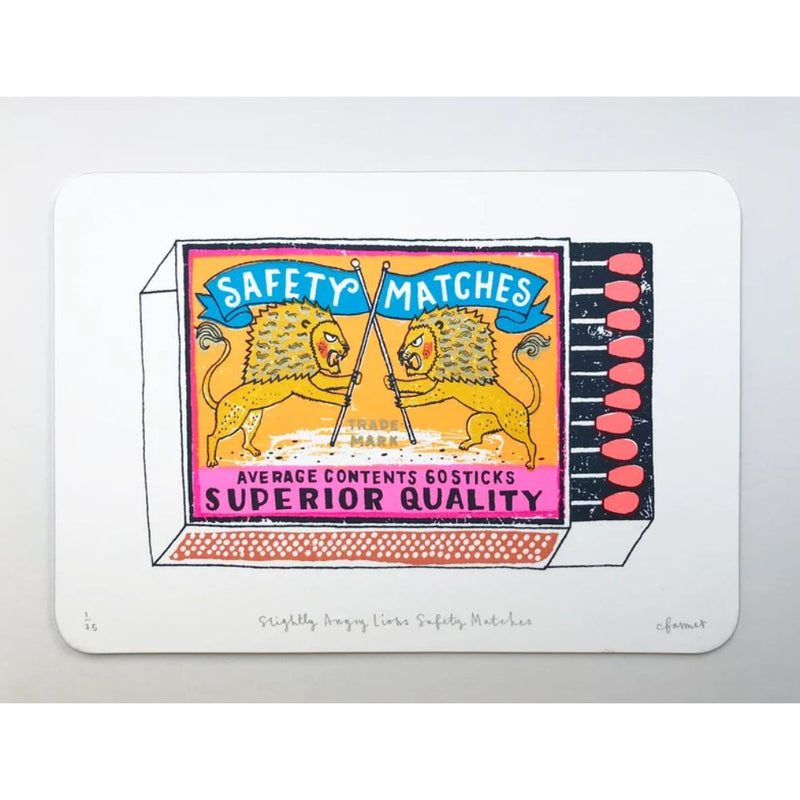 'Slightly Angry Lions Safety Matches' Screen Print, Framed