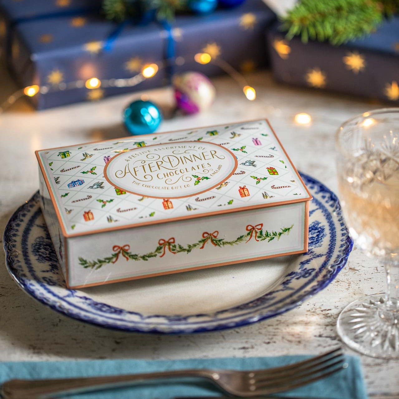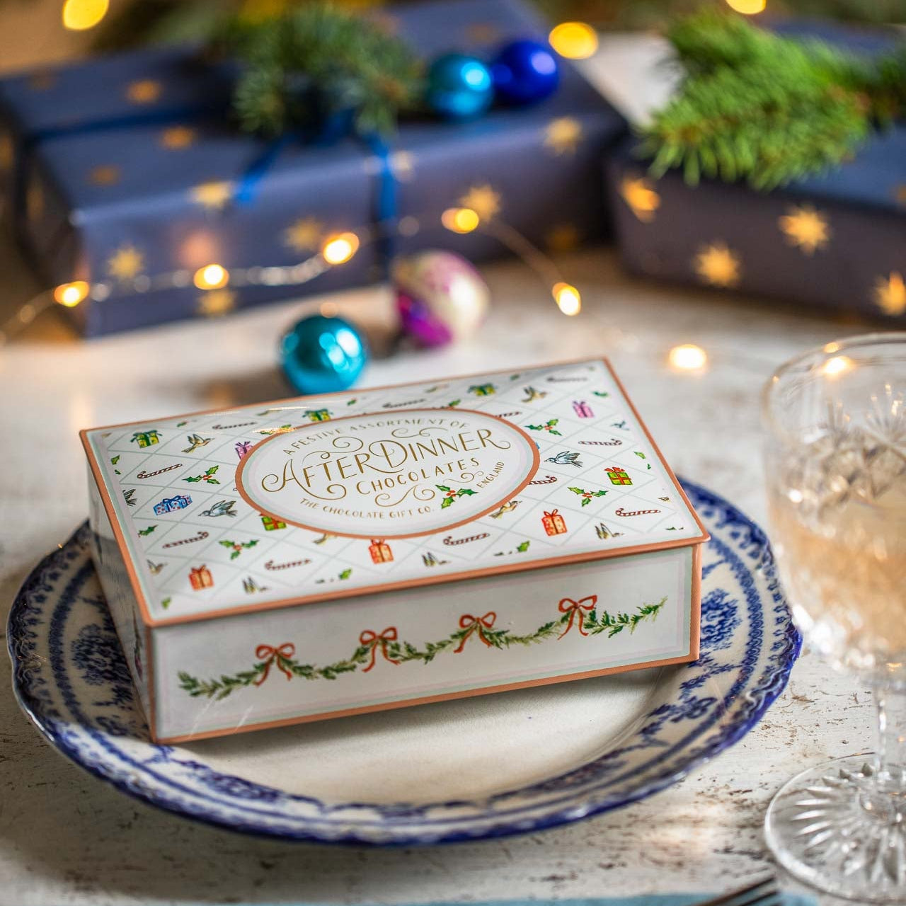 Adorned with illustrations by Amy Swann, once the chocolates have been polished off, this tin can be reused for Christmas Day gatherings for many years to come.