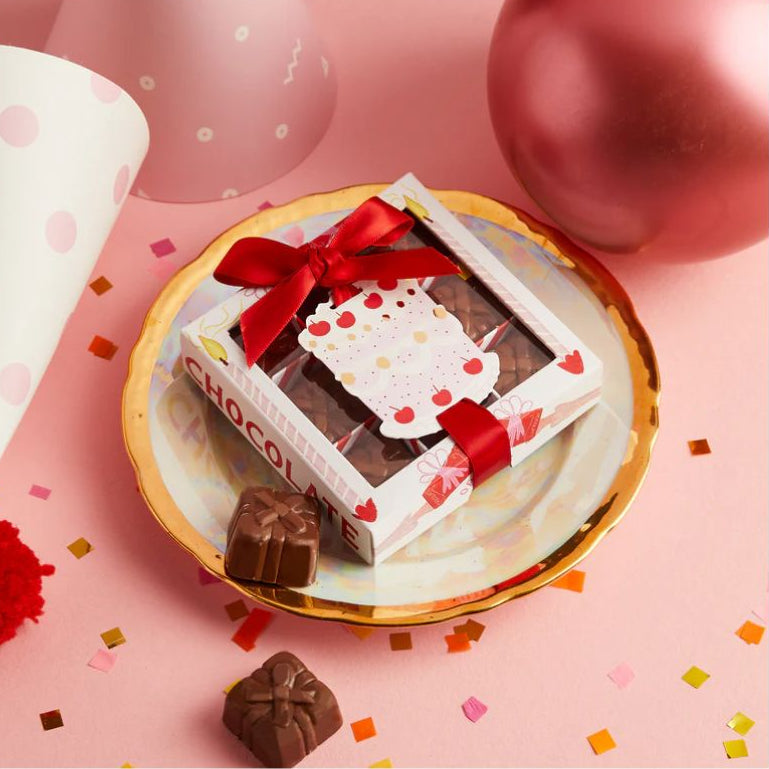 Untie the bright red ribbon and inside you will find 9 present shaped milk chocolate truffles filled with caramel. Super comforting and to be enjoyed after a heavy night of celebrating in front of the TV!