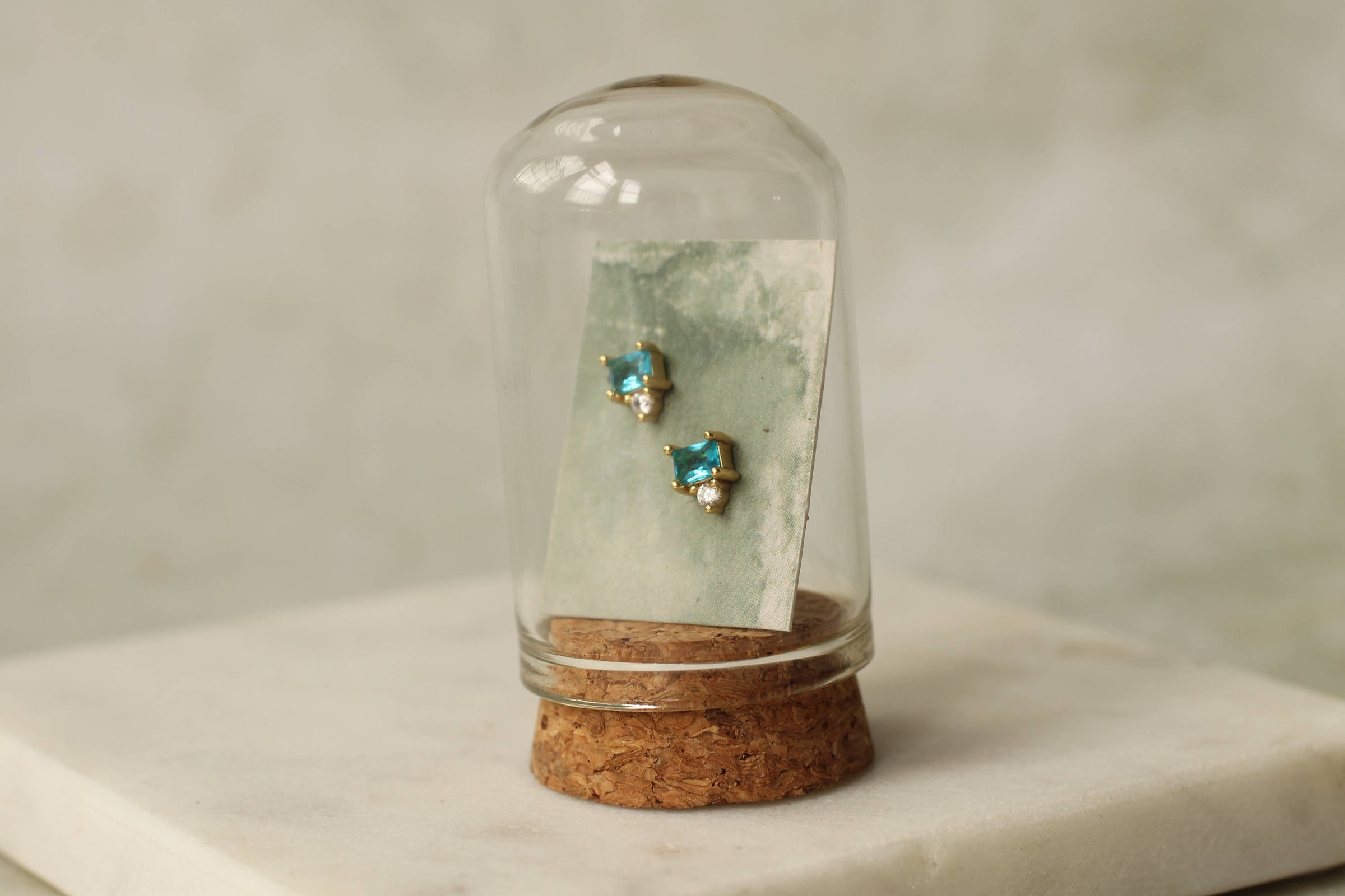These stud earrings come mounted on a linen presentation card in a glass presentation cloche which transforms the earrings into tiny historical specimens and makes a beautiful and engaging gift idea.