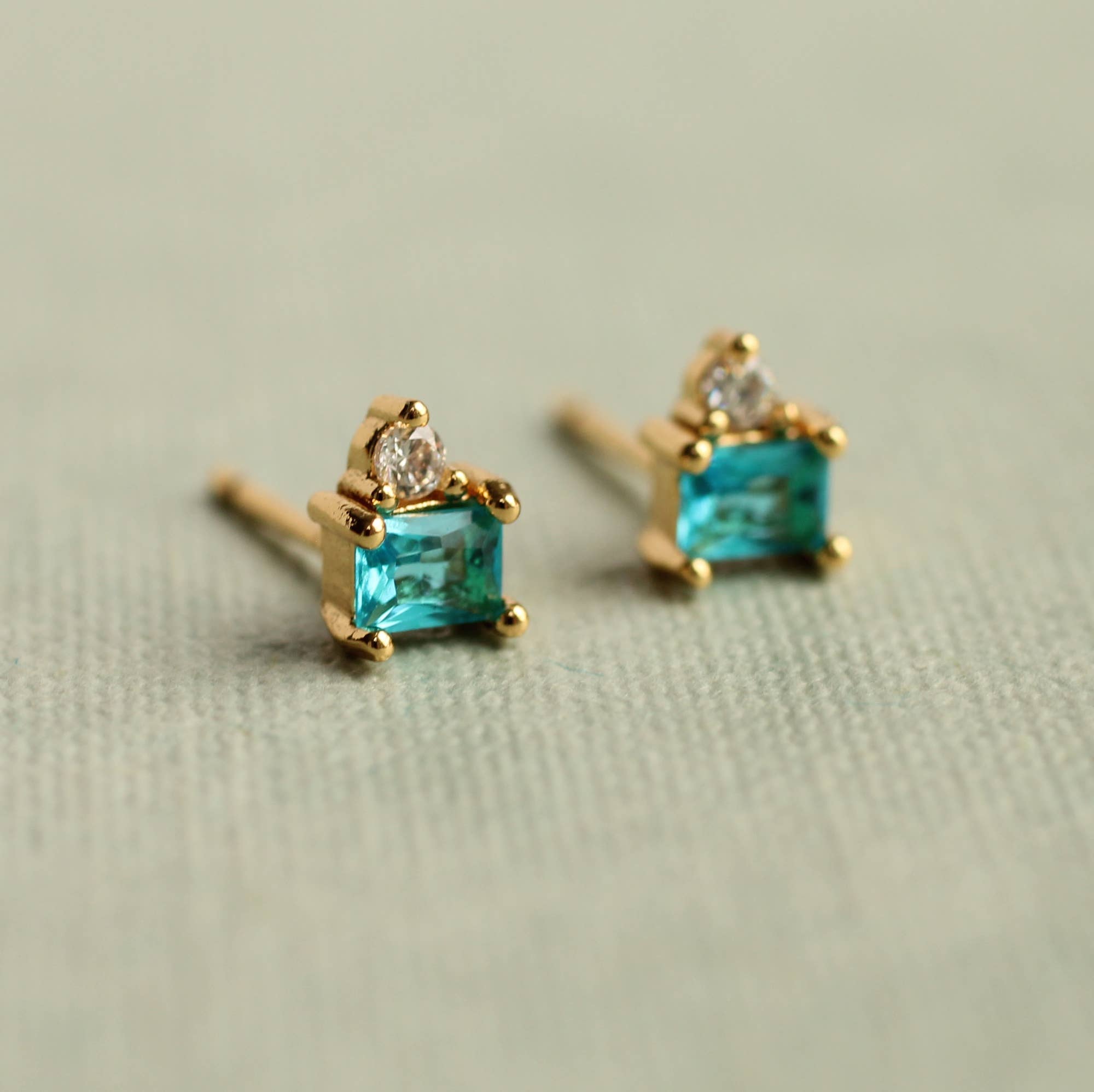 These beautifully detailed turquoise crystal stud earrings are in a classic, geometric Art Deco style and have gold plated solid sterling silver 925 posts and settings. The earrings measure 6mm and are a beautifully wearable and eye-catching piece of jewellery.