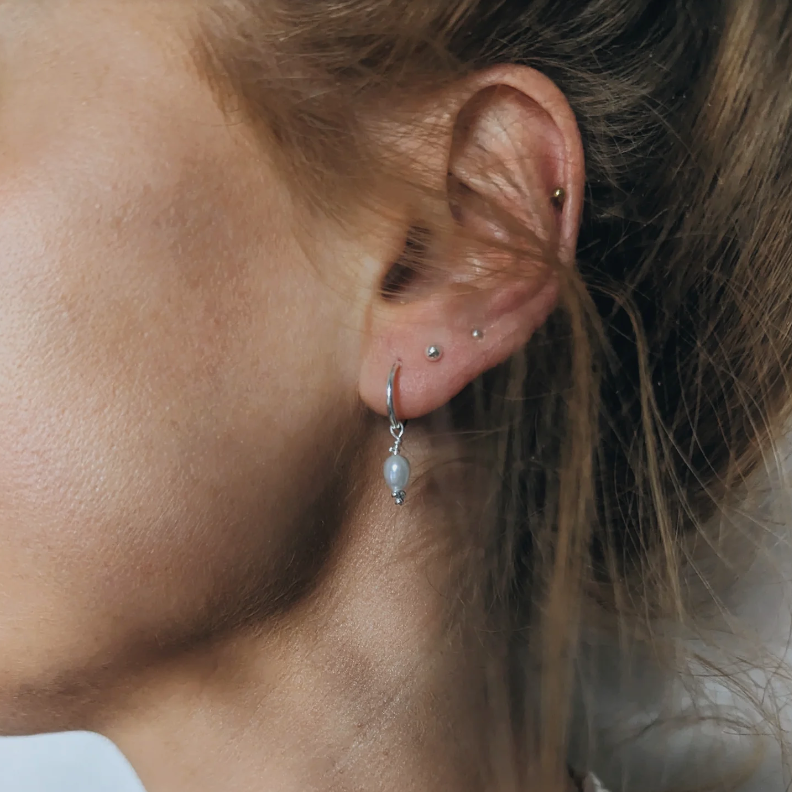 Perfectly modern with a classic touch, these pearl drop huggie hoop earrings are a must have addition for any pearl lover. Their dainty appearance makes them ideal for a delicate stacking look.