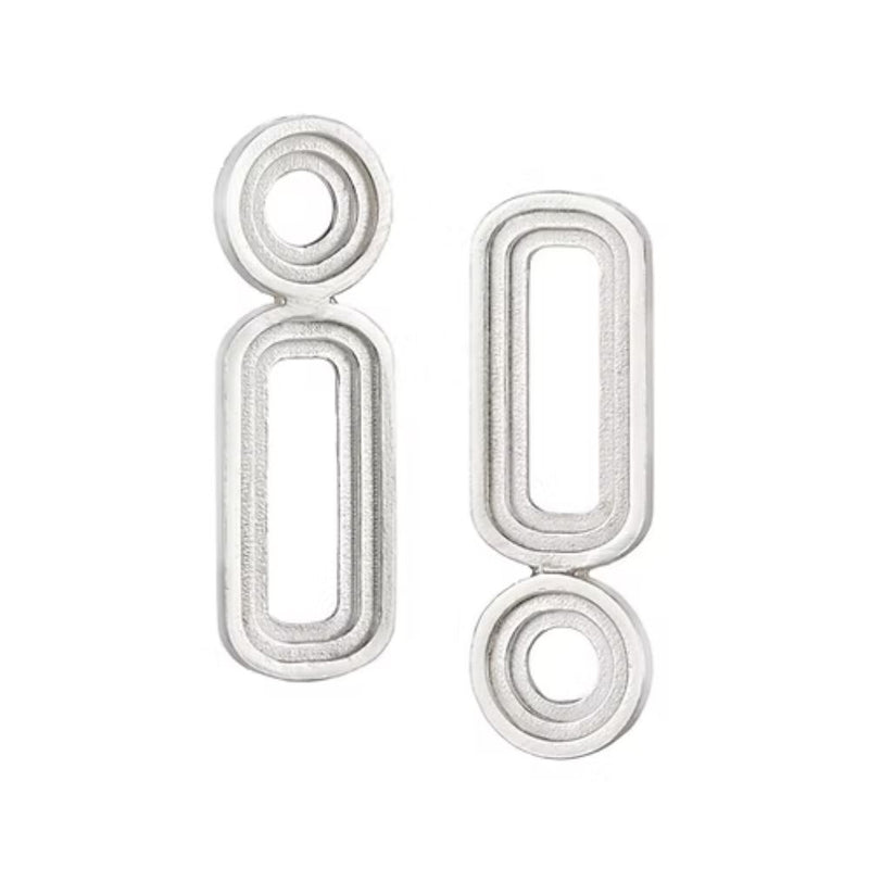 Handcrafted from recycled silver and featuring an eye catching oval & circle stepped design, these unusual earrings are set to become your new jewellery box favourites.