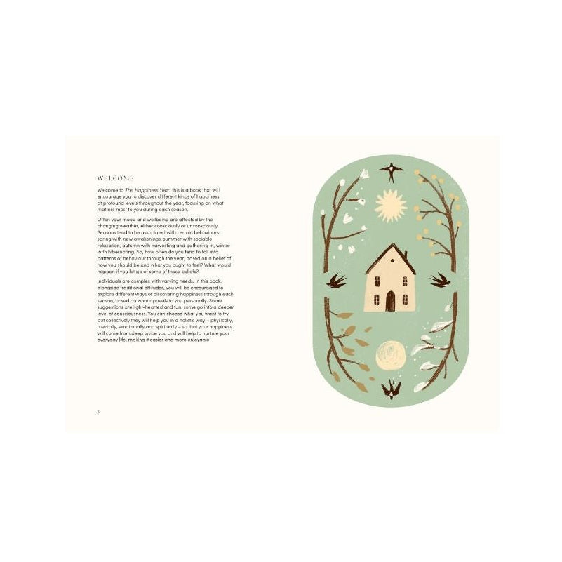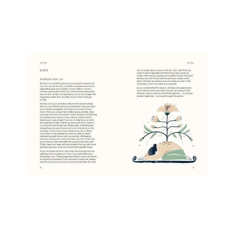 Seasons tend to be associated with certain behaviour: spring with hope, summer with relaxation, autumn with harvesting, winter with hibernating. The Happiness Year features a host of tips and exercises to encourage you to break away from certain stale patterns, including mindful breathing and meditation exercises to help you recharge and reflect, as well as simple projects and seasonal affirmations.