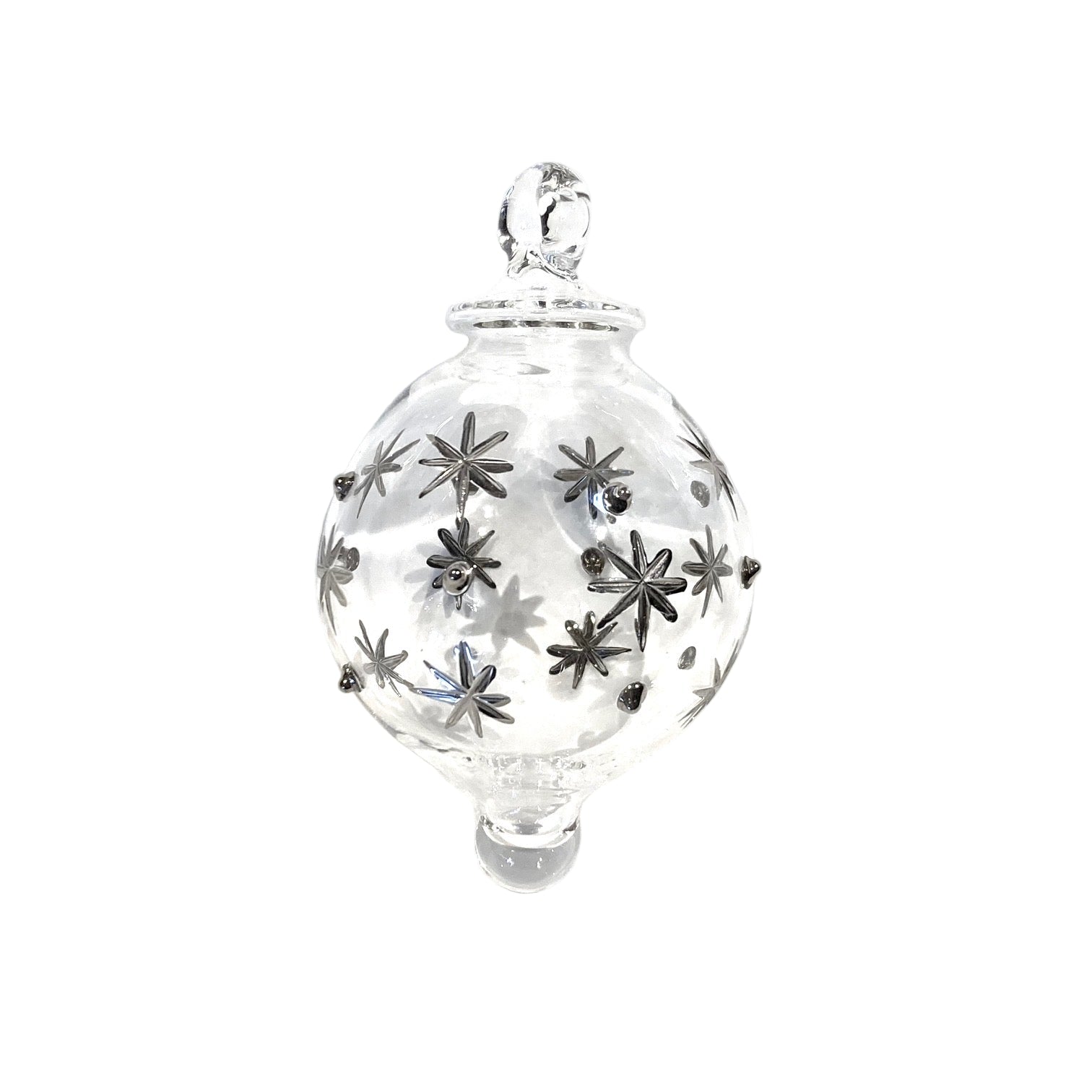 Please Note: These baubles and hand blown and hand decorated so there may be slight variation in size and pattern to the one pictured here.