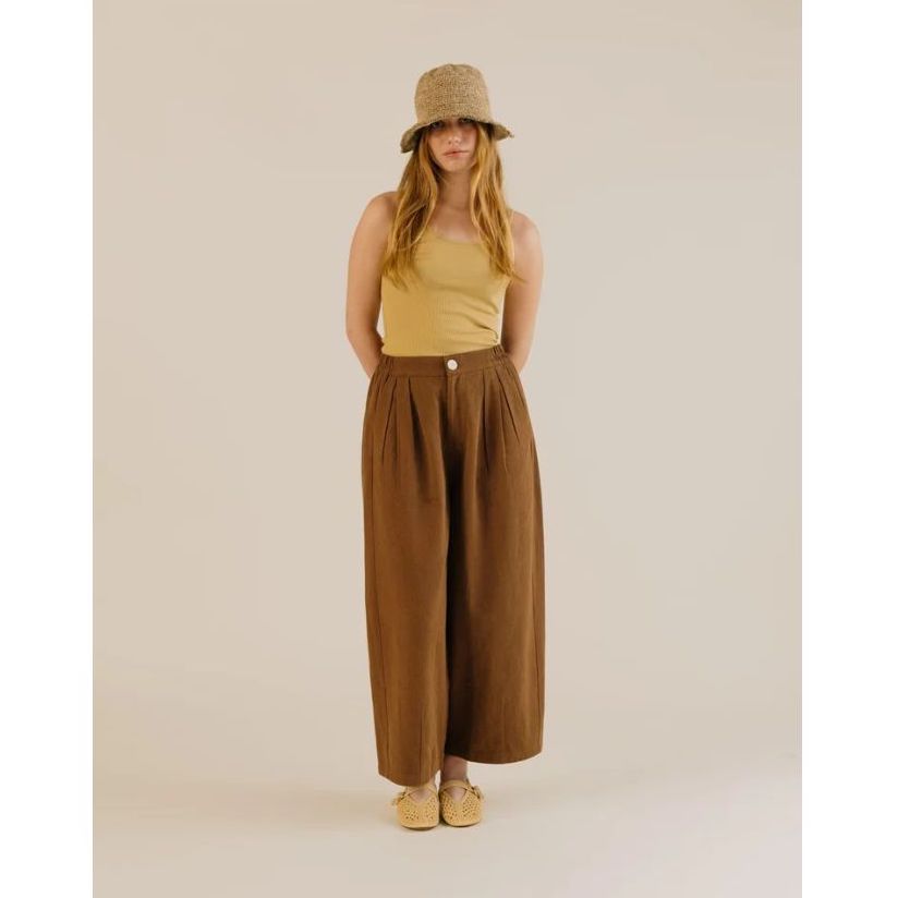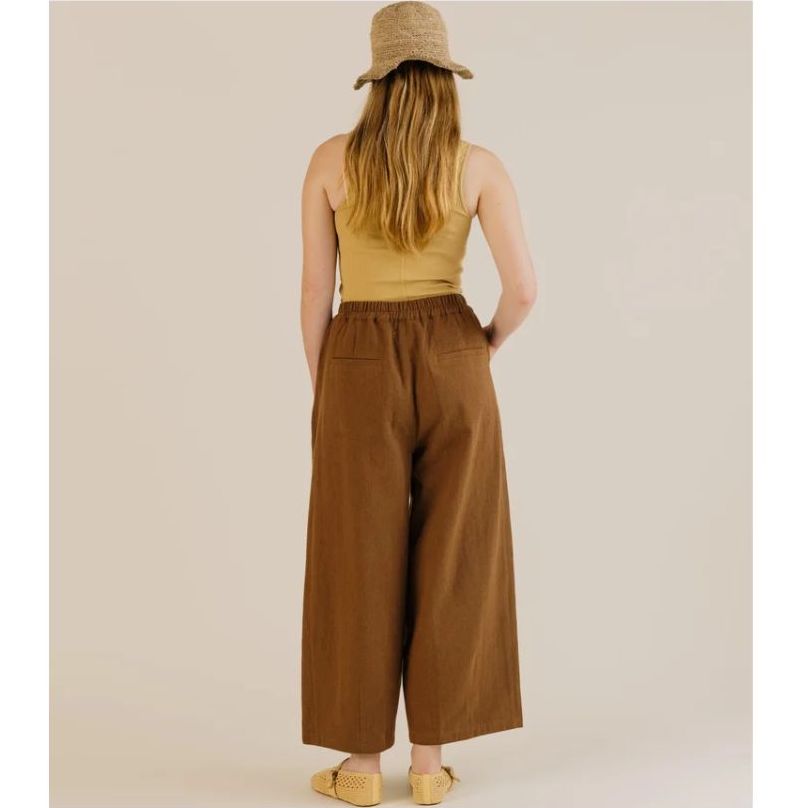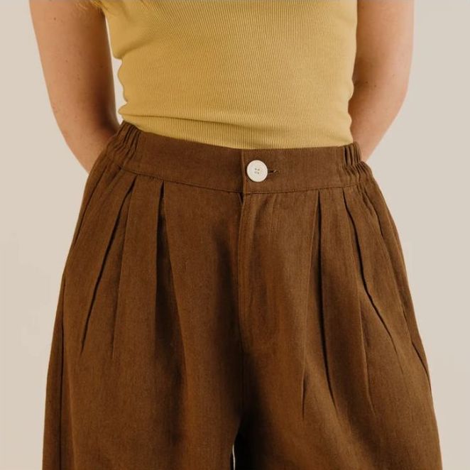 The Leila Trousers are crafted from the most beautiful cotton linen blend fabric with a lovely texture. These trousers fit like a dream featuring an elasticated waist and flat front, inverted front pleats and a side panel creating a barrel leg shape. This style also features slant side pockets, patch back pockets and a hem dart. They look great with everything.