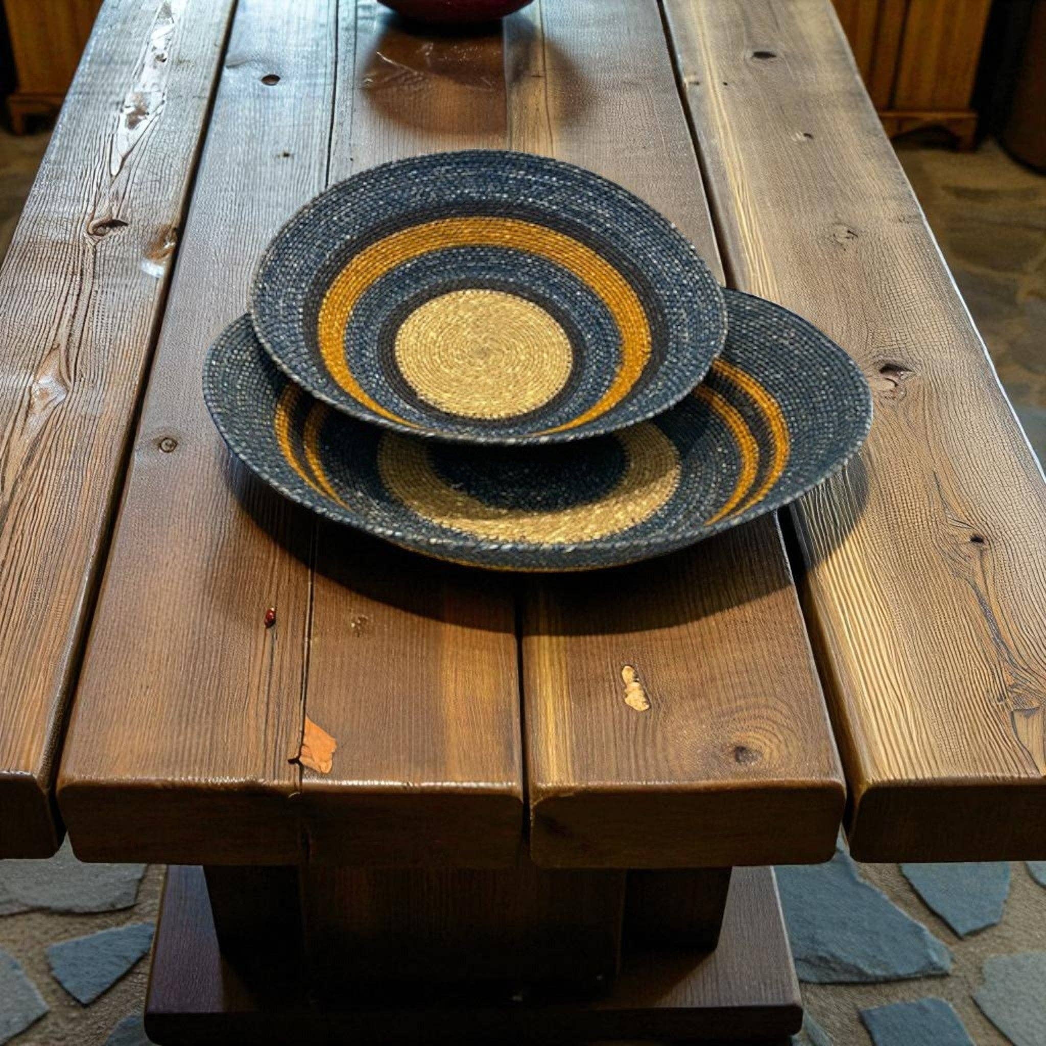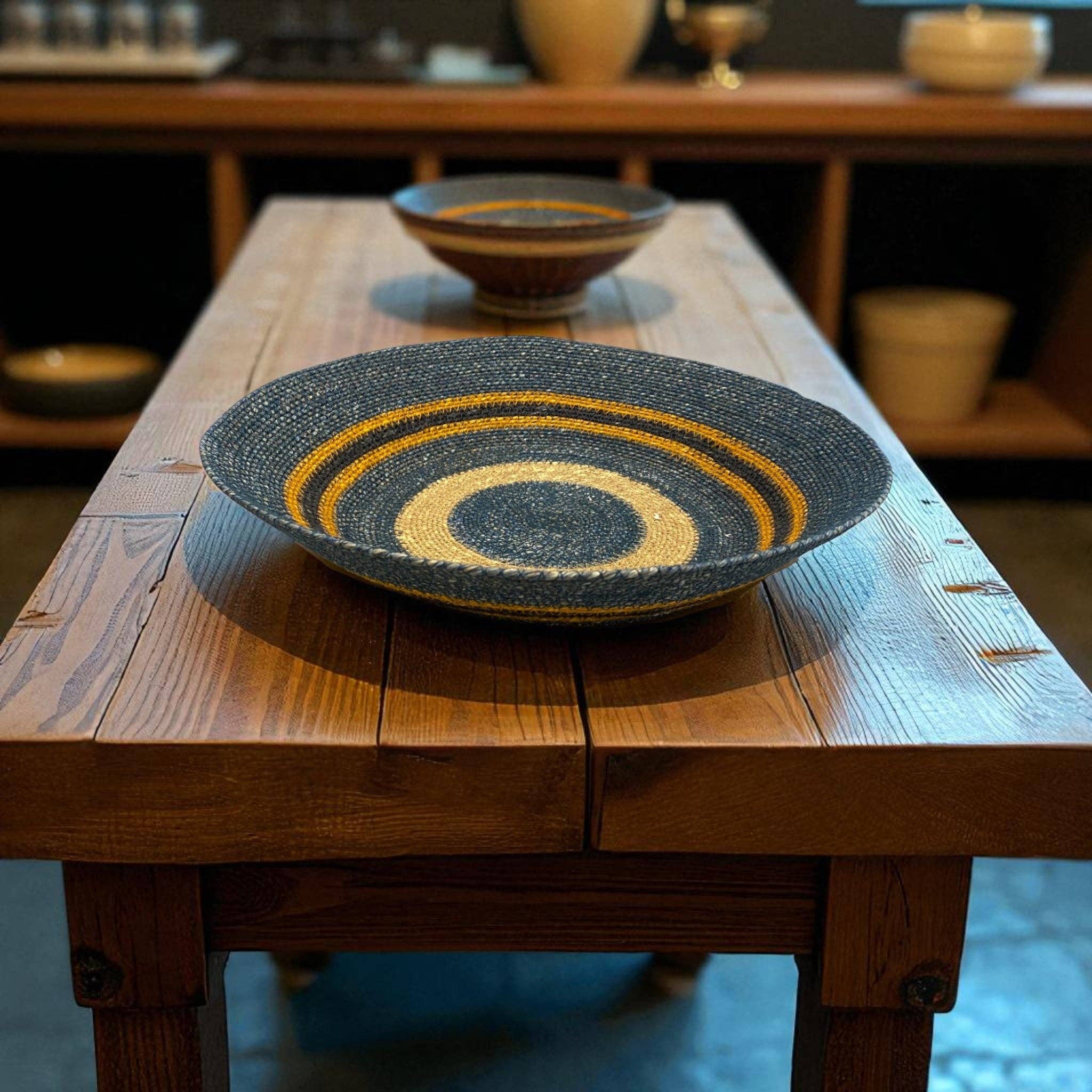 These durable and eco-friendly pieces are designed for versatile mixing and matching in the home. Each bowl's unique variations reflect the hand-finished stitching and artisanal production process.