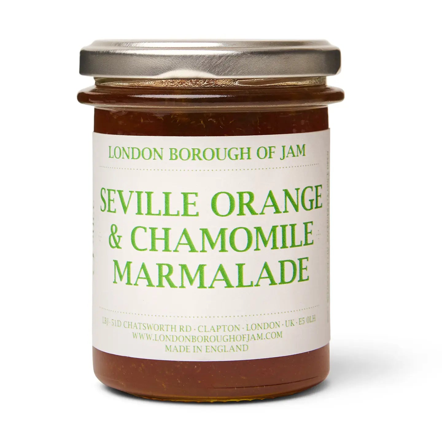 This Marmalade has its foundation in the traditional Seville oranges, with a twist of chamomile. Like all London Borough of Jam, the chamomile isn't an infusion, it is part of the recipe, with little chamomile flowers in each jar. It is best on toast, keeping it simple.