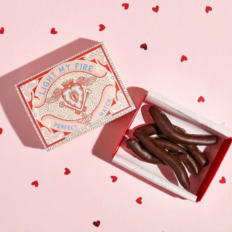 This fun, scarlet red, cotton pouch with a fancy gold tasselled cord, contains five indulgent champagne truffles. A romantic luxury for those times when everything else can wait.