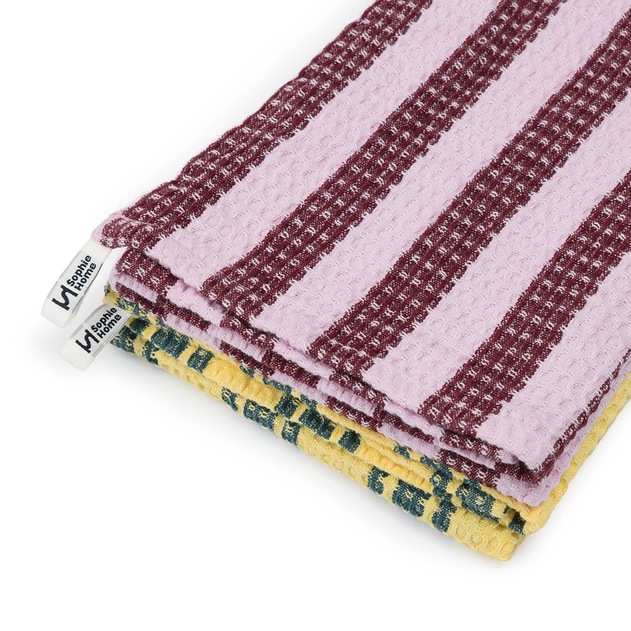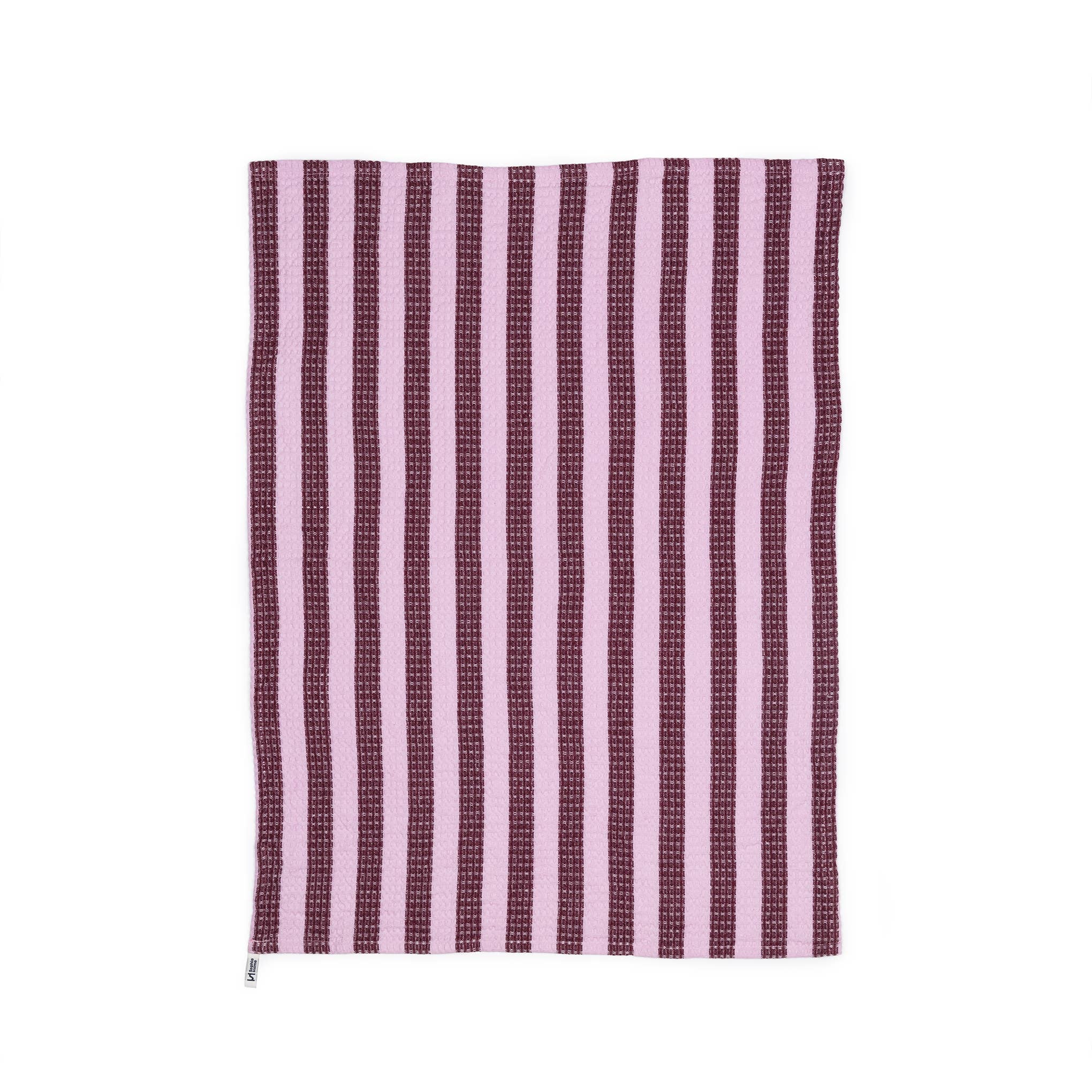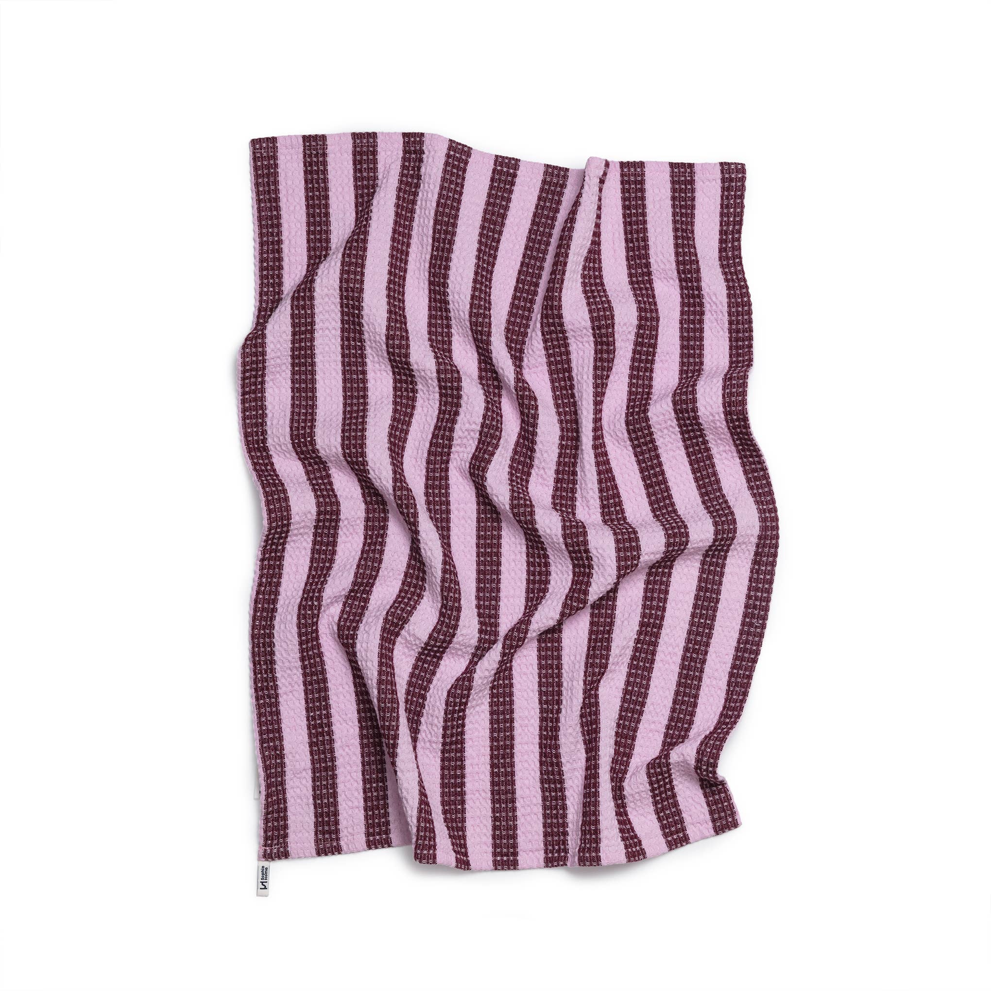 Cotton Waffle Tea Towel 2 Pack: Striped Burgundy