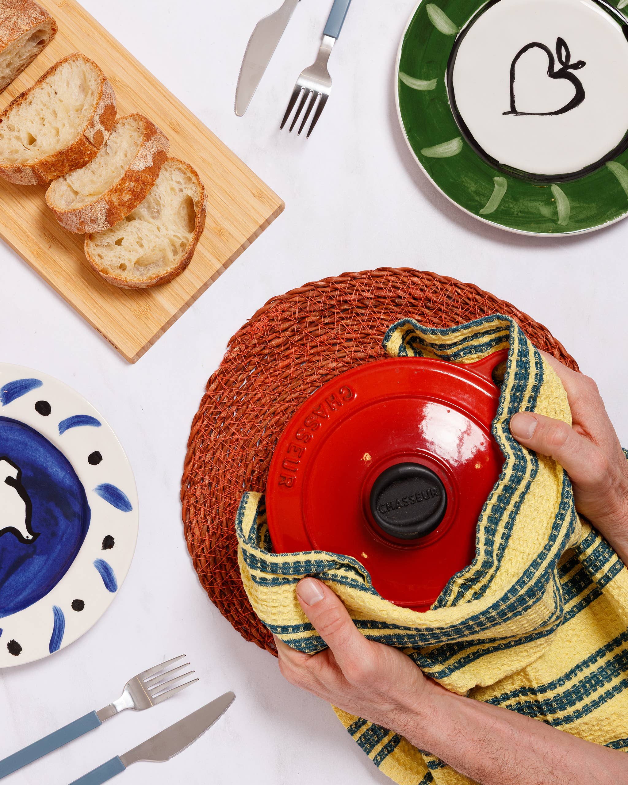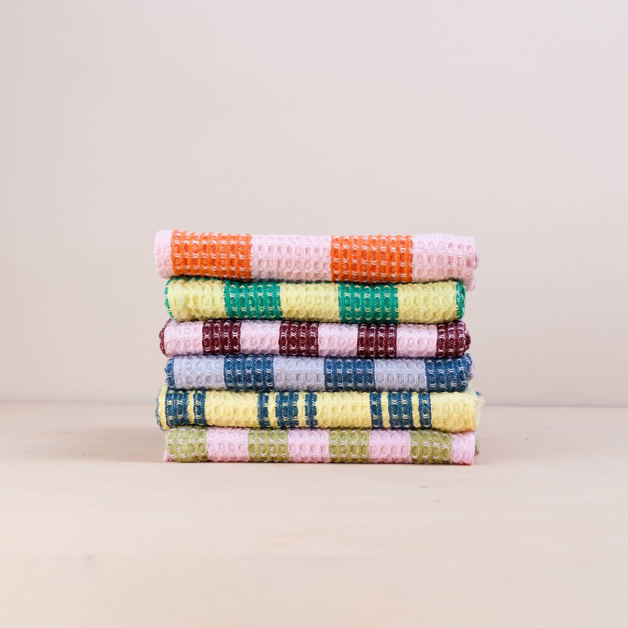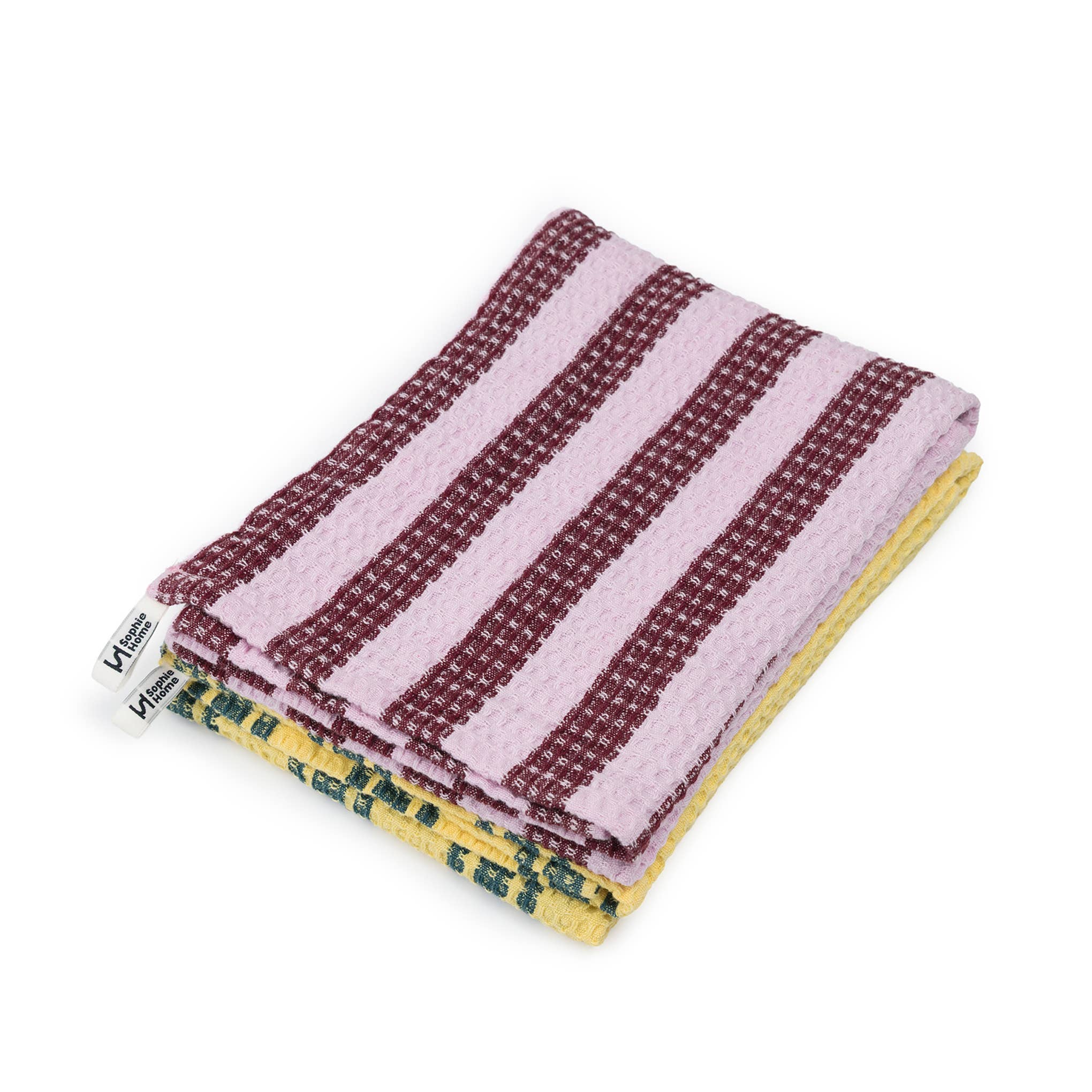 Cotton Waffle Tea Towel 2 Pack: Striped Burgundy