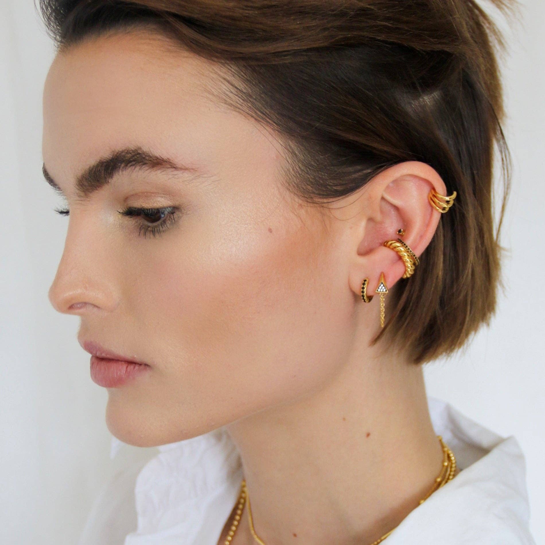 Huggie Earrings With Black Stones | 18k Gold Plated Sterling Silver