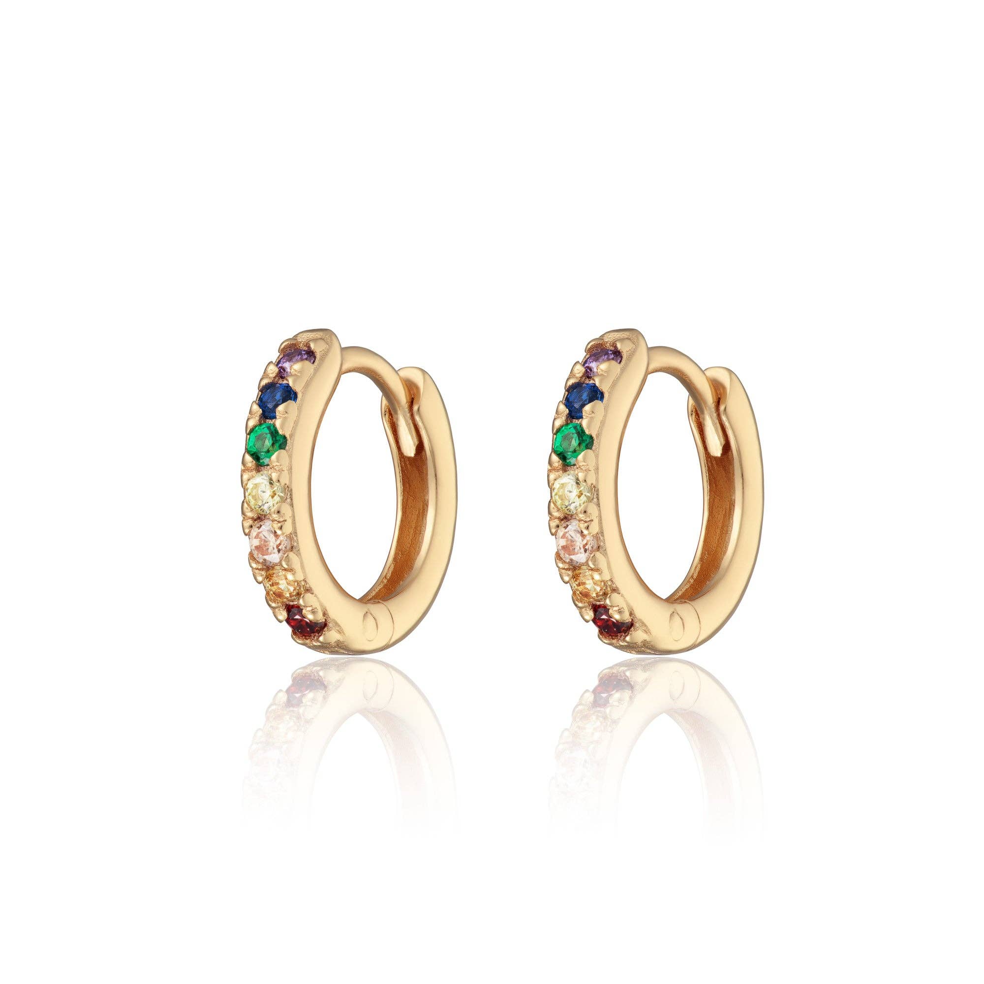 Huggie Earrings with Rainbow Stones | 18k Gold Plated Sterling Silver